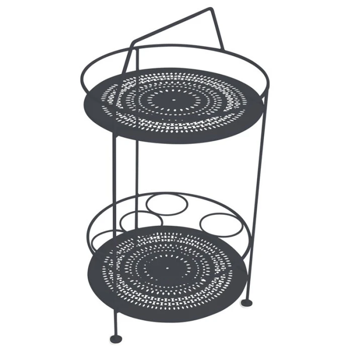 Le bar portatif sera idéal pour compléter votre mobilier de jardin Montmartre et se fondra parfaitement à votre décor. Ce petit bar s’avère très utile pour le service grâce à son porte-bouteille intégré, il vous sera possible de glisser vos bouteilles de vins ou carafes d’eau. Son double plateau en tôle acier perforée est également pratique pour disposer des objets de décoration ou condiments de cuisine. Très maniable car léger, ce bar portatif vous suivra partout.